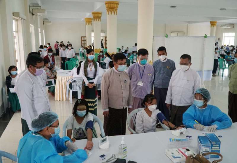 ပညာရေးဝန်ကြီးဌာန ပြည်ထောင်စုဝန်ကြီး ဒေါက်တာညွန့်ဖေသည် ဒုတိယဝန်ကြီးများ ဖြစ်ကြသော ဒေါက်တာဇော်မြင့်၊ ဦးဇော်ဝင်းနှင့်အတူ ယနေ့နံနက် ၉ နာရီတွင် နေပြည်တော်ကောင်စီနယ်မြေ ပျဉ်းမနားမြို့နယ်ရှိ မင်္ဂလာဗျူဟာ ဓမ္မဗိမာန်တော်ကြီး၌ အသက် ၁၂ နှစ်နှင့်အထက် အခြေခံပညာအလယ် တန်း၊ အထက်တန်း ကျောင်းသား ကျောင်းသူများ ကိုဗစ်-၁၉ ရောဂါကာကွယ်ဆေး ဆက်လက်ထိုးနှံ ပေးနေမှုများကို ကြည့်ရှု အားပေးကြသည်။