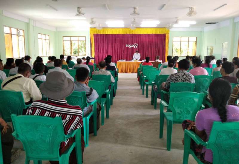 ပဲခူးတိုင်းဒေသကြီး၊ ပဲခူးခရိုင်၊ ကဝမြို့နယ် ကိုဗစ်-၁၉ ရောဂါ ထိန်းချုပ်ရေးနှင့် အရေးပေါ် တုံ့ပြန်ရေးကော်မတီ၏ အသက် ၁၂ နှစ်နှင့်အထက် အလယ်တန်းနှင့် အထက်တန်းကျောင်းသား /ကျောင်းသူများအား ကိုဗစ်- ၁၉ရောဂါကာကွယ်ဆေးထိုးနှံနိုင်ရေး အစည်းအဝေးကို မြို့နယ်အထွေထွေအုပ်ချုပ်ရေးဦးစီးဌာနရုံး အစည်းအဝေးခန်းမ၌