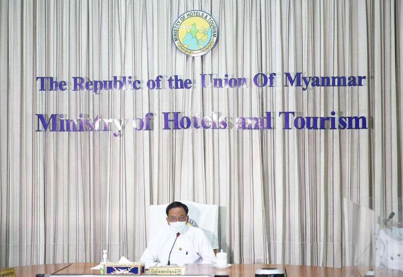 ဟိုတယ်နှင့်ခရီးသွားလာရေးဝန်ကြီးဌာန ပြည်ထောင်စုဝန်ကြီး ဒေါက်တာဌေးအောင် သည် နေပြည်တော်ကောင်စီအပါအဝင် တိုင်းဒေသကြီး/ ပြည်နယ် ရုံးခွဲတာဝန်ခံများ၊ မြန်မာ နိုင်ငံ ဟိုတယ် ဆိုင်ရာလုပ်ငန်းရှင်များအသင်း၏ ဟိုတယ်ဇုန်ဥက္ကဋ္ဌများနှင့် ခရီးသွားလုပ်ငန်း ဖွံ့ဖြိုး တိုးတက်ရေး ဆိုင်ရာ ညှိနှိုင်းအစည်းအဝေးကို ယနေ့နံနက်ပိုင်းတွင် ဝန်ကြီးဌာန၊ နီလာ အစည်း အဝေးခန်းမ၌ ဗီဒီယိုကွန်ဖရင့်စနစ်ဖြင့် ကျင်းပသည်။