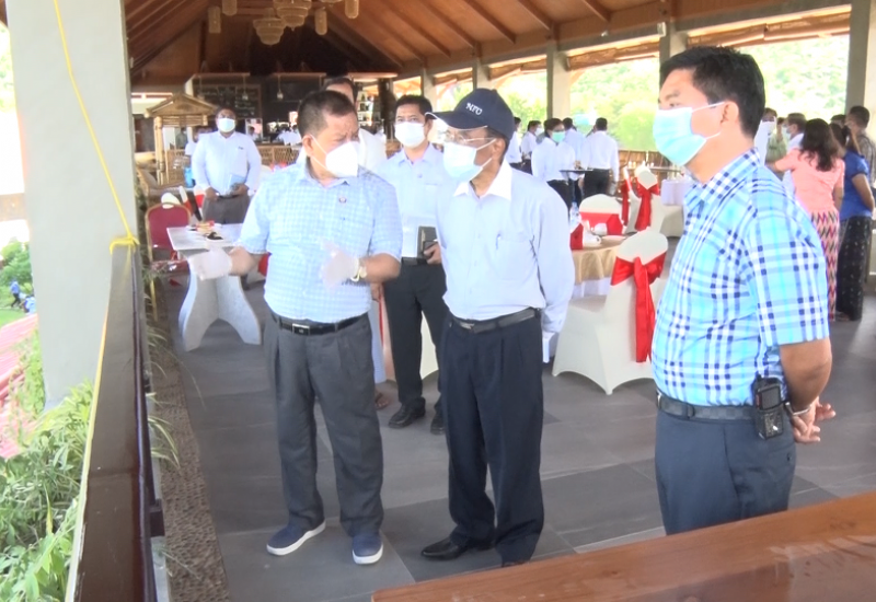 ဟိုတယ်နှင့်ခရီးသွားလာရေးဝန်ကြီးဌာန၊ ပြည်ထောင်စုဝန်ကြီး ဒေါက်တာဌေးအောင်သည် မန္တလေးတိုင်းဒေသကြီး အစိုးရအဖွဲ့ ဝန်ကြီးချုပ် ဦးမောင်ကိုနှင့် အလယ်ပိုင်းတိုင်းစစ်ဌာနချုပ် တိုင်းမှူးဗိုလ်ချုပ် ကိုကိုဦးတို့နှင့်အတူ အောက်တိုဘာ ၃ ရက် နံနက်ပိုင်းတွင် မန္တလေးတိုင်း ဒေသကြီး၊ ပြင်ဦးလွင်ခရိုင်အတွင်းရှိ ရဲရွာရေအားလျှပ်စစ်စက်ရုံသွားရာလမ်း ၆ မိုင်ခွဲတွင် တည်ရှိ သည့် Mandalay Water Boom သို့ သွားရောက်ကြည့်ရှုရာ တာဝန်ရှိသူများက လုပ်ငန်းဆောင်ရွက်မှု နှင့် Resort တည်ဆောက်ထားရှိမှုများကို ရှင်းလင်းတင်ပြကြသည်။