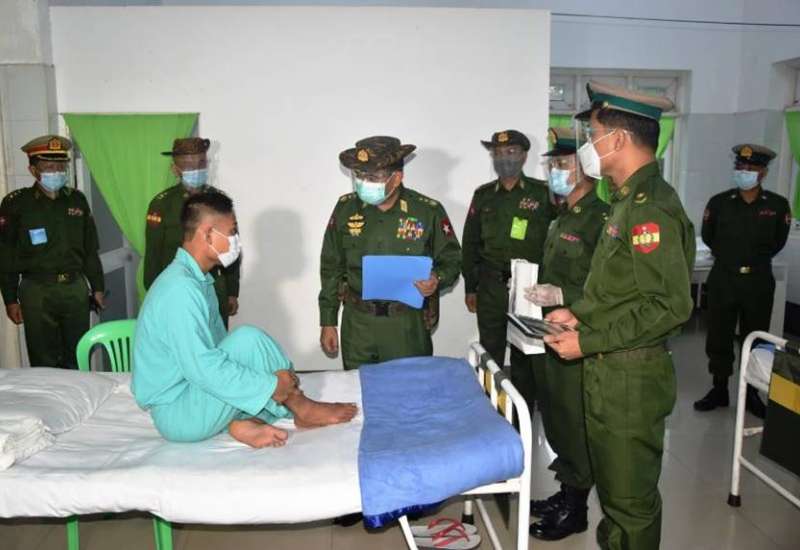 ပဲခူးတိုင်းဒေသကြီး၊ ရွှေကျင်မြို့ရှိ တပ်မတော်ဆေးရုံ၌ တက်ရောက်ဆေးကုသမှု ခံယူလျက်ရှိသော အရာရှိ၊ စစ်သည်၊ မိသားစုများနှင့် ဒေသခံပြည်သူ များအား အောက်တိုဘာ ၂ ရက် နေ့လယ် ပိုင်းတွင် ကာကွယ်ရေးဦးစီးချုပ်ရုံး(ကြည်း)မှ ဒုတိယ ဗိုလ်ချုပ်ကြီး ဖုန်းမြတ်၊ တောင်ပိုင်းတိုင်း စစ်ဌာနချုပ် တိုင်းမှူး ဗိုလ်မှူးချုပ် ထိန်ဝင်းနှင့် အဖွဲ့ဝင်များက သွားရောက်ကြည့်ရှု၍ တစ်ဦးချင်း ၏ ရောဂါဖြစ်ပွားမှု၊ ဆေးဝါးကုသပေးထားမှုနှင့် ကျန်းမာရေး တိုးတက်ကောင်းမွန်မှု အခြေအနေ များအား ရင်းရင်းနှီးနှီး မေးမြန်းအားပေးစကားပြောကြားပြီး စားသောက်ဖွယ်ရာများ ပေးအပ် သည်။