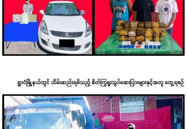 ရှမ်းပြည်နယ်၊ တာချီလိတ်မြို့နယ်နှင့် ရွာငံမြို့နယ်တို့တွင် ငွေကျပ်သိန်း ၆,၀၀၀ ကျော်တန်ဖိုးရှိ စိတ်ကြွရူးသွပ်ဆေးပြားများနှင့် ခဲယမ်းများ ဖမ်းဆီးရမိခဲ့ကြောင်း မြန်မာနိုင်ငံရဲတပ်ဖွဲ့မှ သိရသည်။