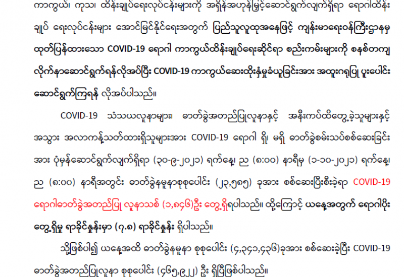 မြန်မာ့မီးရထားက ပြည်သူများခရီးသွားလာမှု လွယ်ကူအဆင်ပြေစေရေးနှင့် ကုန်စည်များ ပို့ဆောင်နိုင်ရေး စီစဉ်ဆောင်ရွက်ပေး လျက်ရှိရာ ရထားလမ်းပိုင်းအသီးသီးတွင် လူစီးရထားများ ပြေးဆွဲပေးခြင်းအား ကျန်းမာရေးဝန်ကြီးဌာန၏ Standard Operating Procedure SOP လမ်းညွှန်ချက်နှင့်အညီ စီစဉ်ဆောင်ရွက်ပေးလျက်ရှိသည်။
