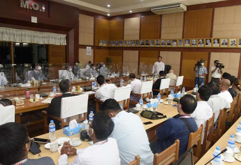 ပြန်ကြားရေးဝန်ကြီးဌာန ပြည်ထောင်စုဝန်ကြီး ဦးမောင်မောင်အုန်းသည် သတင်းစာရှင်းလင်းပွဲ အမှတ်စဉ် (၉/၂၀၂၁) သို့ တက်ရောက်လာကြသည့် ပြည်တွင်း/ ပြည်ပသတင်းမီဒီယာများအား ယနေ့ နံနက် ၁၁ နာရီတွင် အဆိုပါဝန်ကြီးဌာန အစည်းအဝေးခန်းမ၌ တွေ့ဆုံသည်။