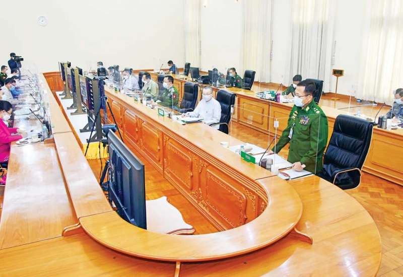 ပညာရေးဝန်ကြီးဌာန၊ အခြေ ခံ ပညာဦးစီးဌာန၊ အလယ်တန်း၊ အထက်တန်း အသက်(၁၂)နှစ်နှင့် အထက်ကျောင်းသား၊ ကျောင်းသူ များအား ကိုဗစ်-၁၉ ကူးစက်မြန်ရောဂါ ကာကွယ်ဆေးထိုးနှံပေး နိုင်ရေး လုပ်ငန်းညှိနှိုင်းအစည်း အဝေးကို ယနေ့ မွန်းလွဲပိုင်းတွင် နေပြည်တော်ရှိ ဘုရင့်နောင်ရိပ် သာအစည်းအဝေးခန်းမ၌ ကျင်းပ ပြုလုပ်ရာ နိုင်ငံတော်စီမံအုပ်ချုပ် ရေးကောင်စီ ဒုတိယဥက္ကဋ္ဌ၊ ဒုတိယဝန်ကြီးချုပ် ဒုတိယ ဗိုလ်ချုပ်မှူးကြီး စိုးဝင်း တက်ရောက် အမှာစကားပြောကြားသည်။