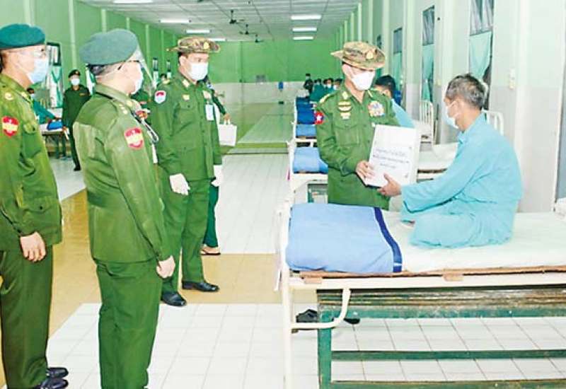 ကရင်ပြည်နယ် သံတောင်ကြီးမြို့ရှိ နယ်မြေခံ တပ်မတော်ဆေးရုံ၌ တက်ရောက်ဆေးကုသမှု ခံယူ လျက်ရှိသော အရာရှိ၊ စစ်သည်၊ မိသားစုများနှင့် ဒေသခံပြည်သူများအား စက်တင်ဘာ ၂၉ ရက် မွန်းလွဲပိုင်းတွင် ကာကွယ်ရေးဦးစီးချုပ်ရုံး(ကြည်း) မှ ဒုတိယဗိုလ်ချုပ်ကြီး ဖုန်းမြတ်၊ တောင်ပိုင်းတိုင်း စစ်ဌာနချုပ်တိုင်းမှူး ဗိုလ်မှူးချုပ် ထိန်ဝင်းနှင့် အဖွဲ့ဝင်များက လည်းကောင်း၊