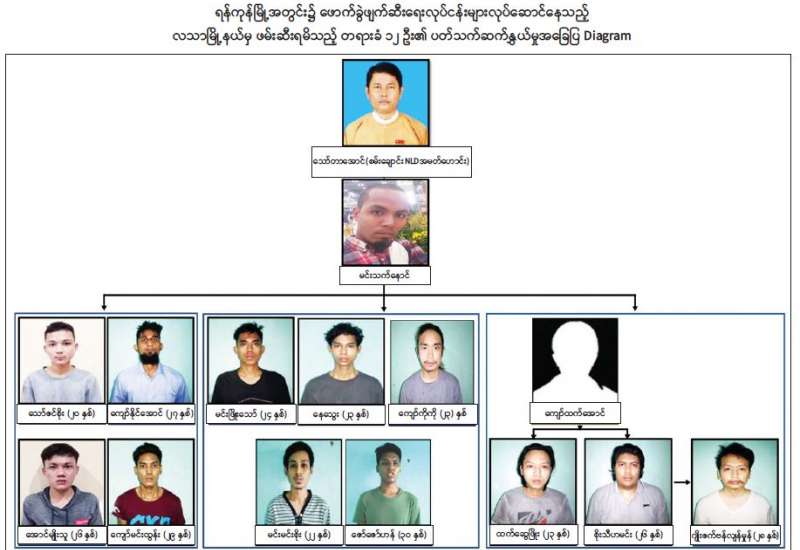 ဩဂုတ်လ ၁၀ ရက်တွင် ရန်ကုန်တိုင်းဒေသကြီး၊ ဗိုလ်တစ်ထောင်မြို့နယ်၊ အမှတ်(၆)ရပ်ကွက်၊ (၄၄)လမ်း၊ တိုက်အမှတ်(၁၆)၊ (၃)လွှာ၌ ဖောက်ခွဲဖျက်ဆီးရေး ပစ္စည်းများသိုဝှက်ထားကြောင်း သတင်း အရ လုံခြုံရေးတပ်ဖွဲ့ဝင်များက ဝင်ရောက် ရှာဖွေရာ တိုက်ခန်းအတွင်းမှ ဝေဖြိုးအောင်၊ သီဟကောင်းဆက် နှင့် ပိုးကျော့ကျော့ခန့် တို့အား လက်လုပ်ဗုံးမျိုးစုံ ၁၆ လုံး၊ ယမ်းပျော့ ၂ ချောင်း၊ ဗြောက်အိုးထုပ်များ၊ ဖောက်ခွဲရေးဆက်စပ်ပစ္စည်းများနှင့်အတူ ဖမ်းဆီးရမိခဲ့မှုဖြစ်စဉ်အား သတင်းထုတ်ပြန် ခဲ့ပြီးဖြစ်သည်။