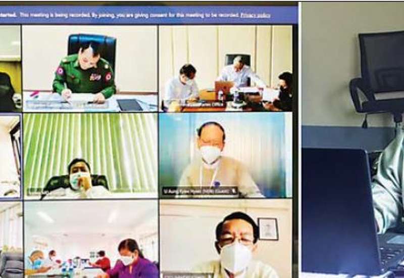 ဘဏ်လုပ်ငန်းဆိုင်ရာအစည်းအဝေးကို ယနေ့ နံနက်ပိုင်းတွင် ဗီဒီယိုကွန်ဖရင့်စနစ်ဖြင့် ကျင်းပရာ မြန်မာနိုင်ငံတော်ဗဟိုဘဏ် ဒုတိယ ဥက္ကဋ္ဌ ဒေါ်သန်းသန်းဆွေ၊ ကုန်သွယ်မှုနှင့် ကုန်စည်စီးဆင်းမှုများ မှန်ကန်မြန်ဆန်စေရေး ဗဟိုကော်မတီအတွင်းရေးမှူး ဗိုလ်မှူးချုပ် ရန်နောင်စိုးနှင့် ပုဂ္ဂလိကဘဏ်များ၊ နိုင်ငံပိုင်ဘဏ်များ၊ နိုင်ငံခြားဘဏ်များမှ ကိုယ်စား လှယ်များ တက်ရောက်ကြသည်။