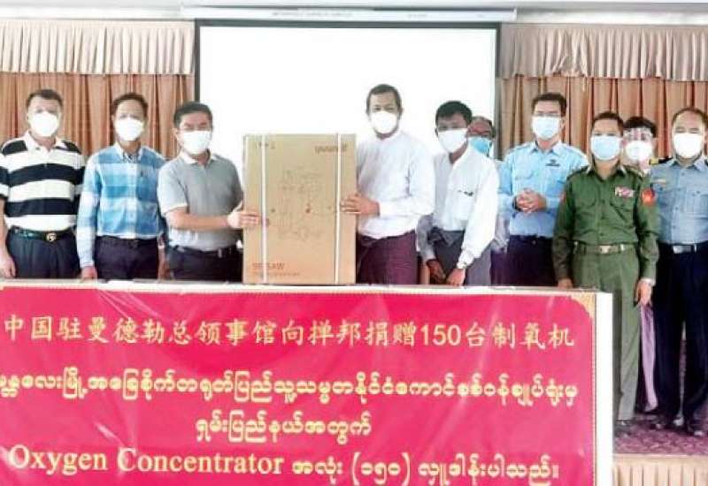 မူဆယ်မြို့၌ မန္တလေးမြို့အခြေစိုက် တရုတ်ပြည်သူ့သမ္မတနိုင်ငံ ကောင်စစ် ဝန်ချုပ်ရုံးမှ ရှမ်းပြည်နယ်အတွင်းရှိ ကိုဗစ်- ၁၉ ရောဂါခံစားနေရသူပြည်သူ များအသုံးပြုနိုင်ရန်အတွက် ကုသ ရေး အသုံးအဆောင်ဖြစ်သော အောက်ဆီဂျင်စက် အလုံး ၁၅၀ လှူဒါန်း ခြင်းကို ယနေ့ မွန်းလွဲ ၂နာရီက မူဆယ်ခရိုင်စုပေါင်းရုံးခန်းမ၌ ပြုလုပ်သည်။