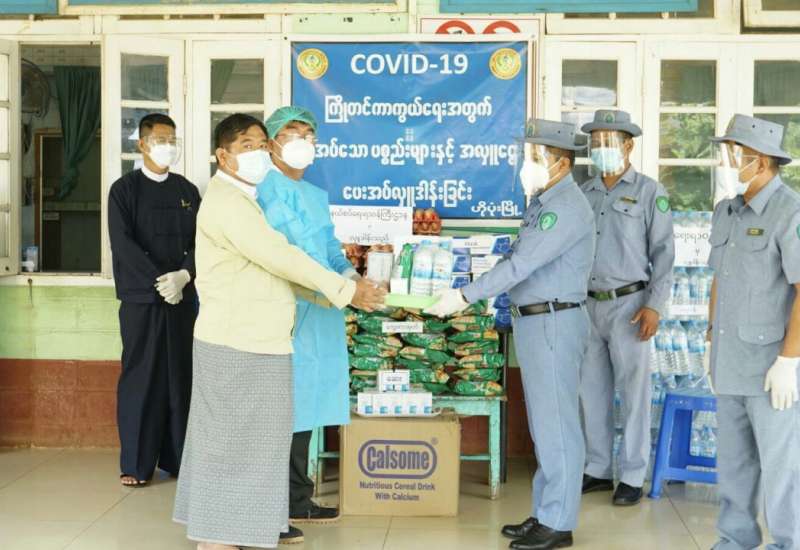 ကျန်းမာရေးဝန်ထမ်းများ၊ ပရဟိတအသင်းအဖွဲ့များ၊ စေတနာ့ဝန်ထမ်း များ စားရေးအဆင်ပြေ စေရေးအတွက် တပ်မတော်နှင့် စေတနာရှင် အလှူရှင်များက စားသောက်ဖွယ်ရာများ၊ ထောက်ပံ့ငွေများနှင့် ရောဂါ ကာကွယ်ရေး အထောက်အကူပြုပစ္စည်းများကိုထောက်ပံ့လှူဒါန်း လျက် ရှိသည်။