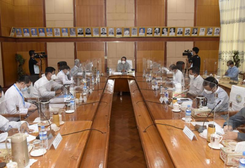 ကုန်စည်ကူးသန်းရေးတွင် ကိုဗစ်-၁၉ ရောဂါ ပြန့်ပွားမှုထိန်းချုပ်ရေးလုပ်ငန်းကော်မတီ၏ ဆဋ္ဌမ အကြိမ်မြောက် ကိုဗစ်-၁၉ ကာကွယ်ကုသရေး အခြေခံဆေးဝါးနှင့် ဆေးပစ္စည်းများ ပြည်ပမှ တင်သွင်းခြင်းဆိုင်ရာ လုပ်ငန်းညှိနှိုင်းအစည်းအဝေးကို ယနေ့နံနက် ၁၀ နာရီတွင် စီးပွားရေးနှင့် ကူးသန်းရောင်းဝယ်ရေးဝန်ကြီးဌာန အစည်းအဝေး ခန်းမ၌ ကျင်းပရာ စီးပွားရေးနှင့်ကူးသန်းရောင်းဝယ်ရေးဝန်ကြီးဌာန ဒုတိယဝန်ကြီး ဦးညွန့်အောင် တက်ရောက်အမှာစကား ပြောကြားသည်။