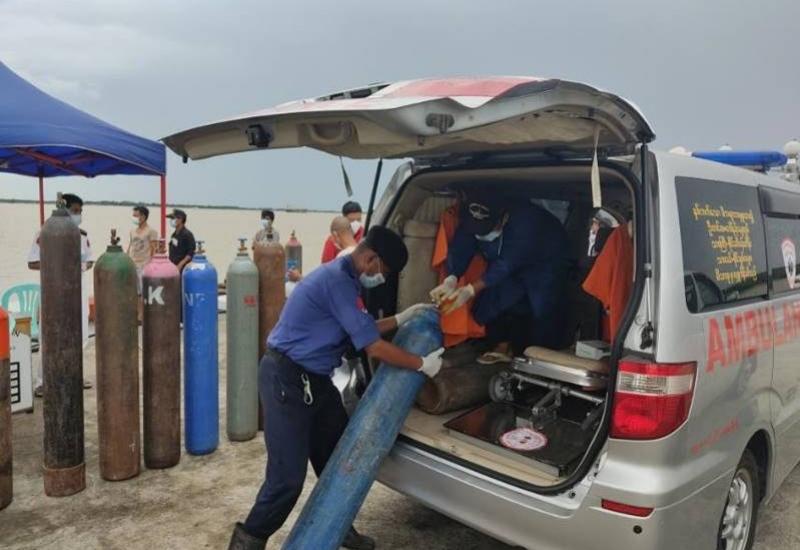 ကိုဗစ်-၁၉ ရောဂါဓာတ်ခွဲအတည်ပြု ပိုးတွေ့ လူနာ များနှင့် သီးသန့်စောင့်ကြည့်ရမည့်သူများကို ကုသရေးလုပ်ငန်းများ ဆောင်ရွက်ရာတွင် အောက်ဆီဂျင် လိုအပ်ချက်များကို တစ်ဖက် တစ်လမ်းမှ အထောက်အကူပြုစေရန်အတွက် တပ်မတော်နှင့် အလှူရှင်များက အောက်ဆီဂျင် အိုးများကို တိုင်းဒေသကြီးနှင့် ပြည်နယ်အသီးသီးရှိ ပြည်သူ့ဆေးရုံများ၊ တပ်မတော်ဆေးရုံများ၊ ကျန်းမာရေးဌာနများနှင့် ကိုဗစ်စင်တာများသို့ ပေးပို့လှူဒါန်းလျက်ရှိသည်။ ။