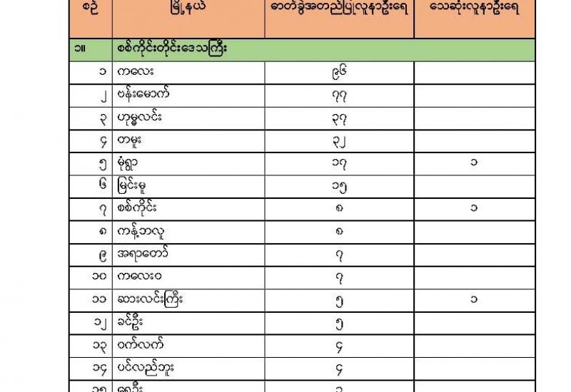 ကချင်ပြည်နယ်၊ မြစ်ကြီးနားနှင့် ဝိုင်းမော်မြို့နယ်တို့မှ ဒေသခံပြည်သူများကို ပန်းခင်းစီမံချက်ဖြင့် ဆောင်ရွက်ပြီးဖြစ်သည့် အိမ်ထောင်စုလူဦးရေစာရင်းနှင့် နိုင်ငံသားစိစစ်ရေးကတ်ပြားများ ပေးအပ်ပွဲကို ဇူလိုင် ၂ ရက်၊ နံနက် (၉)နာရီတွင် မြစ်ကြီးနားမြို့၊ မြို့တော်ခန်းမ၌ ကျင်းပသည်။