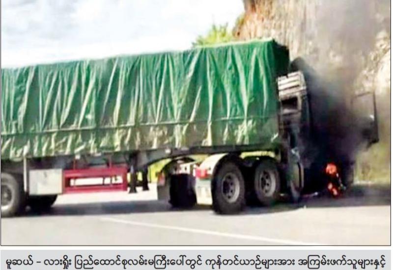 ကရင်ပြည်နယ်၊ လှိုင်းဘွဲ့မြို့နယ်နှင့် ရှမ်းပြည်နယ်(မြောက်ပိုင်း)၊ မူဆယ်မြို့နယ်တို့၌ မြို့ဝင်ဘီးခွန်ဂိတ်နှင့် ကုန်တင်ယာဉ် ၃ စီးတို့အား ဆူပူအကြမ်းဖက်သူများနှင့် လက်နက်ကိုင် သောင်းကျန်းသူ များက မီးရှို့ဖျက်ဆီးခဲ့ကြောင်း သိရသည်။