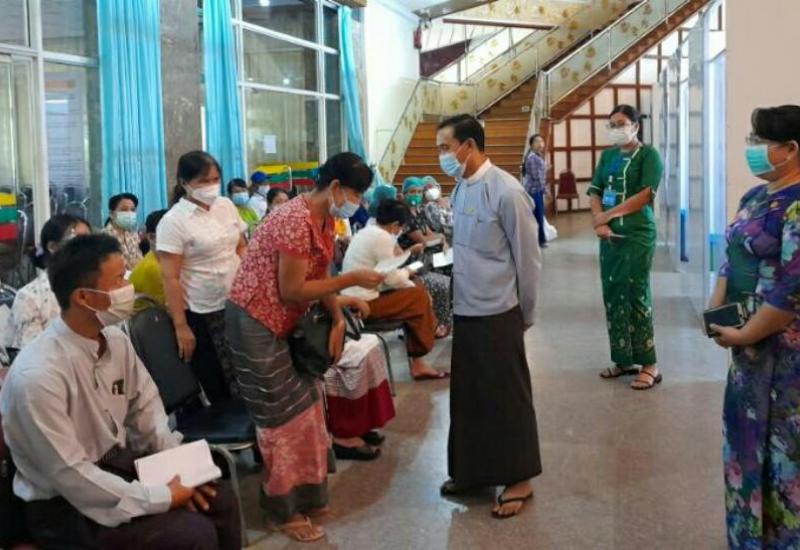 ကျန်းမာရေးနှင့်အားကစားဝန်ကြီးဌာန ဒုတိယဝန်ကြီး ဒေါက်တာအေးထွန်းသည် ယနေ့တွင် မရမ်းကုန်းမြို့နယ် မင်းဓမ္မလမ်း ရှိ Myanmar Convention Centre (MCC) သို့ ရောက်ရှိပြီး ကိုဗစ်-၁၉ ရောဂါပိုးတွေ့လူနာများ လက်ခံကုသနိုင်ရေး ပြင်ဆင်ထားရှိမှုကို ကြည့်ရှုစစ်ဆေး သည်။