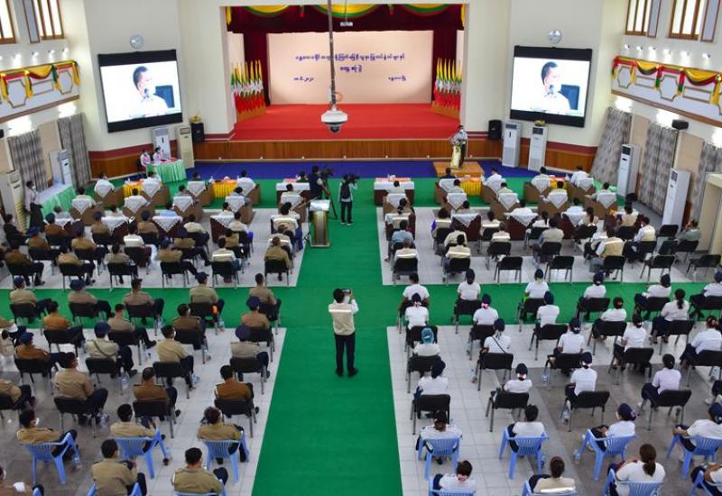 ဒုတိယဦးစီးမှူးရာထူးအဆင့်မှ ဦးစီးအရာရှိရာထူးအဆင့်သို့ တိုးမြှင့်ပေးနိုင်ရေး အရည်အချင်း စစ် စာမေးပွဲလာရောက်ဖြေဆိုကြသည့် အမှုထမ်းများအား တွေ့ဆုံအမှာစကား ပြောကြားသည့် အခမ်းအနားကို ယနေ့ နံနက် ၁၁ နာရီတွင် နေပြည်တော်ရှိ တိုင်းရင်းသား လူမျိုးများရေး ရာဝန်ကြီးဌာန အစည်းအဝေးခန်းမ၌ ကိုဗစ်-၁၉ တားဆီးကာကွယ်ရေး ကျန်းမာရေးဆိုင်ရာ ညွှန်ကြားချက်များနှင့်အညီ ကျင်းပသည်။
