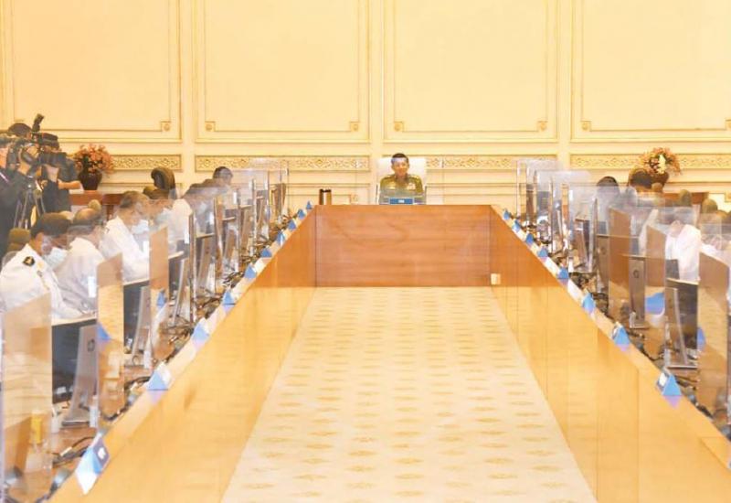 နိုင်ငံတော်စီမံအုပ်ချုပ်ရေးကောင်စီ စီမံခန့်ခွဲရေးကော်မတီ အစည်းအဝေး(၉/၂၀၂၁)ကို ယနေ့နံနက်ပိုင်းတွင် နေပြည်တော်ရှိ နိုင်ငံတော်စီမံအုပ်ချုပ်ရေးကောင်စီ ဥက္ကဋ္ဌရုံး အစည်းအဝေးခန်းမ၌ကျင်းပရာ နိုင်ငံတော်စီမံအုပ်ချုပ်ရေး ကောင်စီဥက္ကဋ္ဌ၊ တပ်မတော်ကာကွယ်ရေးဦးစီးချုပ် ဗိုလ်ချုပ်မှူးကြီးမင်းအောင်လှိုင် တက်ရောက် အမှာ စကား ပြောကြားသည်။