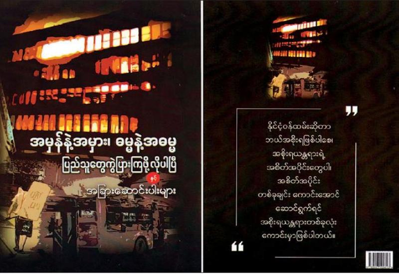 အမှန်နဲ့အမှား၊ ဓမ္မနဲ့ အဓမ္မ ပြည်သူတွေကွဲပြားကြ ဖို့လိုပါပြီနှင့် အခြားဆောင်းပါးများစာအုပ်ကို သတင်းနှင့် စာနယ်ဇင်းလုပ်ငန်းက စီစဉ်ထုတ်ဝေ ဖြန့်ချိသည်။