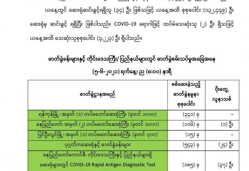 ရန်ကုန်တိုင်းဒေသကြီး မြို့နယ်အသီးသီး ရှိ အခြေခံကုန်စည်ဈေးများတွင် နေ့စဉ်ကိုဗစ်-၁၉ကပ်ရောဂါ သတ်မှတ်စည်းကမ်း ချက်များနှင့်အညီ ဖွင့်လှစ်လျက်ရှိရာရောင်းဝယ်ဖောက်ကားမှုမှာလည်း စည်ကား များပြား လျက်ရှိခြင်းကြောင့် ယခုအခါ ဈေးအများစုကို အေးအေးချမ်းချမ်း ဖြင့် ပြန်လည်ဖွင့်လှစ်ပေးလျက်ရှိကြောင်း ရန်ကုန်မြို့တော် စည်ပင်သာယာရေး ကော်မတီဈေးများဌာနမှ သိရသည်။