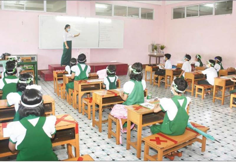 ကိုဗစ်-၁၉ ကူးစက်ကပ်ရောဂါကြောင့် မြန်မာနိုင်ငံရှိ အခြေခံပညာ ကျောင်းများကို ၂၀၂၀-၂၀၂၁ ပညာသင်နှစ်တွင် ပညာသင်ကြားမှုများ ရပ်နားခဲ့ရာမှ ၂၀၂၁-၂၀၂၂ ပညာသင်နှစ်အတွက် အခြေခံပညာအဆင့် ကျောင်းများကို နိုင်ငံတော်က ယနေ့ ပြန်လည်ဖွင့်လှစ်ခဲ့ရာ ကျောင်းသားကျောင်းသူများ စတင်ပညာသင်ကြားလျက်ရှိသည်။