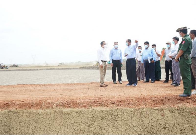 စိုက်ပျိုးရေး၊ မွေးမြူရေးနှင့်ဆည်မြောင်းဝန်ကြီးဌာန ပြည်ထောင်စုဝန်ကြီး ဦးတင်ထွဋ်ဦး သည် မေ ၂၉ ရက် နံနက်ပိုင်းတွင် မကွေးတိုင်းဒေသကြီး မြို့သစ်မြို့နယ် စက်မှုလယ်ယာစနစ် ကျလယ်ယာမြေဖော်ထုတ်ရေး လုပ်ငန်းခွင်သို့ ကြည့်ရှုစစ်ဆေးသည်။