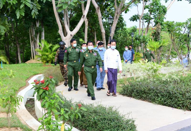နိုင်ငံတော်စီမံအုပ်ချုပ်ရေးကောင်စီဥက္ကဋ္ဌ တပ်မတော်ကာကွယ်ရေးဦးစီးချုပ် ဗိုလ်ချုပ်မှူးကြီး မင်းအောင်လှိုင်သည် ကောင်စီဝင်များဖြစ်ကြသည့် ဗိုလ်ချုပ်ကြီး မြထွန်းဦး၊ ဒုတိယ ဗိုလ်ချုပ်ကြီး မိုးမြင့်ထွန်း၊ ကောင်စီအတွင်းရေးမှူး ဒုတိယ ဗိုလ်ချုပ်ကြီး အောင်လင်းဒွေး၊ တွဲဖက်အတွင်းရေးမှူး ဒုတိယဗိုလ်ချုပ်ကြီး ရဲဝင်းဦး၊ နေပြည်တော်ကောင်စီ ဥက္ကဋ္ဌ ဒေါက်တာ မောင်မောင်နိုင်၊ တာဝန်ရှိသူများနှင့်အတူ ယနေ့ညနေပိုင်းတွင် နေပြည်တော်၊ မင်္ဂလာ ကန်တော်ပတ်လမ်း တိုးချဲ့ တည်ဆောက်မည့် အခြေအနေနှင့် ရာဇဌာနီလမ်း ကုက္ကိုတန်းရှေ့ အလှမြက်ခင်းစိုက်မည့် မြေနေရာပြုပြင်နေမှု အခြေအနေများကို သွားရောက်ကြည့်ရှုစစ် ဆေးသည်။