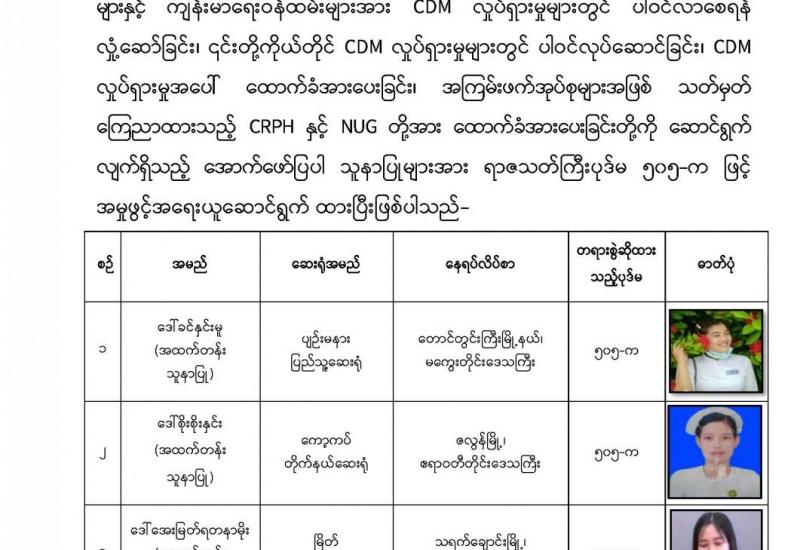 အကြမ်းဖက်အဖွဲ့အစည်းများအဖြစ် ကြေညာထားသော NUG အမည်ခံ ပြည်ပြေးအစိုးရနှင့် CRPH အမည်ခံ ပြည်ပြေးလွှတ်တော်ကော်မတီတို့၏ ထောက်ပံ့မှု နှင့် ဆူပူအကြမ်းဖက်သူများက မြို့နယ်အချို့၌ အကြမ်းဖက်လုပ်ရပ်များကို ဆောင်ရွက်လျက်ရှိခြင်းကြောင့် နိုင်ငံတော်တည်ငြိမ်အေးချမ်းရေးနှင့် အများပြည်သူ တို့၏ လုံခြုံရေး၊ တရားဥပဒေစိုးမိုးရေးနှင့် ရပ်ရွာအေးချမ်းသာယာရေးတို့ ပြည့်ဝစွာရရှိ စေရေးအတွက် တပ်မတော်၊ မြန်မာနိုင်ငံရဲတပ်ဖွဲ့၊ မြန်မာနိုင်ငံမီးသတ်တပ်ဖွဲ့တို့မှ တပ်ဖွဲ့ဝင်များဖြင့် ပူးပေါင်း၍ ဖေဖော်ဝါရီ ၁၄ ရက် ညပိုင်းမှစတင်၍ တိုင်းဒေသကြီးနှင့် ပြည်နယ်အသီးသီးရှိ မြို့နယ်များ၌ လှည့်ကင်း၊ ပတ်ကင်းများဖြင့် လိုအပ်သည့် လုံခြုံရေးလုပ်ငန်းများကို ဆက်လက်ဆောင်ရွက် ပေးလျက်ရှိကြောင်းသိရှိရသည်။