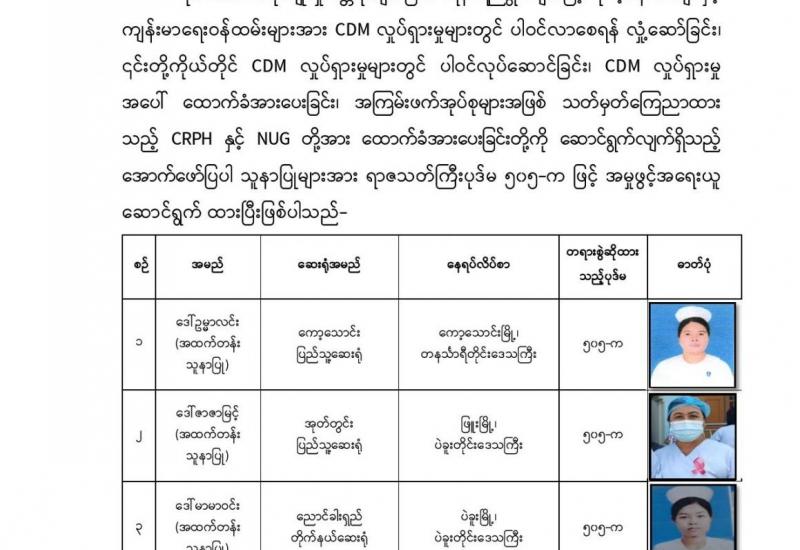 လုပ်ငန်းလိုအပ်ချက်အရ ဗဟိုအဆင့်ဆေးရုံကြီးများ၊ ခုတင်(၂၀၀)နှင့်အထက် ပြည်သူ့ဆေးရုံကြီးများသို့ ပြောင်းရွှေ့တာဝန်ထမ်းဆောင်မည့် ဆေးရုံအုပ်ကြီးများနှင့် တွေ့ဆုံပွဲကို ယနေ့ မွန်းလွဲပိုင်းတွင် ကျန်းမာရေးနှင့် အားကစားဝန်ကြီးဌာန၊ အစည်းအဝေးခန်းမ၌ ကျင်းပသည်။
