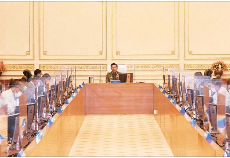 နိုင်ငံတော်စီမံအုပ်ချုပ်ရေးကောင်စီ စီမံခန့်ခွဲရေးကော်မတီ အစည်းအဝေး (၇/၂၀၂၁) ကို ယနေ့နံနက်ပိုင်းတွင် နေပြည်တော်ရှိ နိုင်ငံတော်စီမံအုပ်ချုပ်ရေးကောင်စီဥက္ကဋ္ဌရုံး အစည်းအဝေးခန်းမ၌ ကျင်းပရာ နိုင်ငံတော်စီမံအုပ်ချုပ်ရေး ကောင်စီဥက္ကဋ္ဌ၊ တပ်မတော် ကာကွယ်ရေးဦးစီးချုပ် ဗိုလ်ချုပ်မှူးကြီး မင်းအောင်လှိုင် တက်ရောက်အမှာစကား ပြောကြားသည်။
