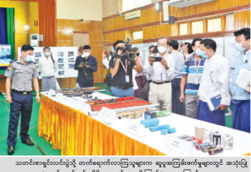 ဆူပူအကြမ်းဖက်သူများ အသုံးပြုလျက်ရှိသည့် လက်နက်များနှင့် ပစ္စည်းများ သိုဝှက်ထားမှုနှင့် ကိုင်ဆောင် မှုများကို လုံခြုံရေးတပ်ဖွဲ့ဝင်များက စစ်ဆေးရှာဖွေသတင်းထုတ် ဖမ်းဆီးထိန်းသိမ်း ခြင်းများ ဆောင်ရွက်လျက်ရှိသည်။ ။
