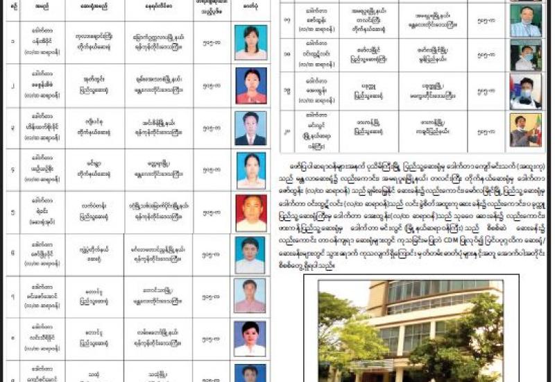 နိုင်ငံတော်တည်ငြိမ်အေးချမ်းမှုကို ပျက်ပြားစေရန် ရည်ရွယ်ချက်ဖြင့် CDM လှုပ်ရှားမှုတွင် ပါဝင်သည့် ဆရာဝန်များအား ရာဇသတ်ကြီး ပုဒ်မ ၅၀၅-က ဖြင့် အမှုဖွင့် အရေးယူဆောင်ရွက်