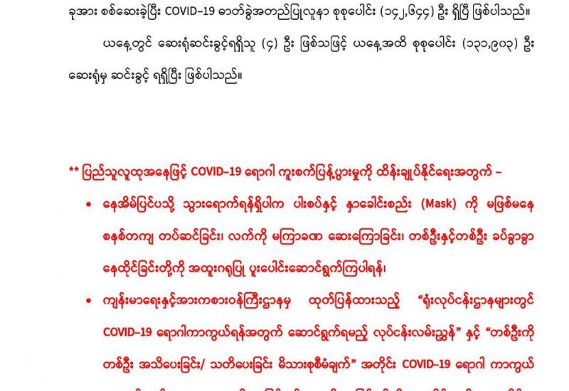 COVID-19 ရောဂါစောင့်ကြပ်ကြည့်ရှုမှုနှင့်ပတ်သက်၍ သတင်းထုတ်ပြန်ခြင်း(
