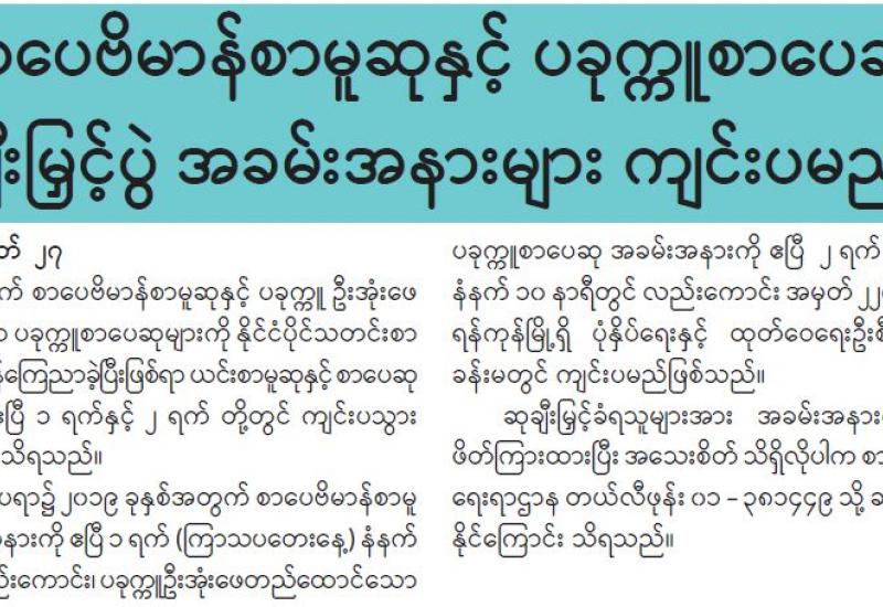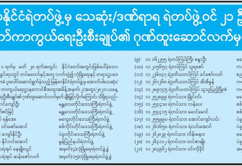 တိုင်းဒေသကြီးနှင့် ပြည်နယ်များရှိ တိုင်းရင်းသား ပြည်သူများအတွက် တပ်မတော်ဆေးရုံများနှင့်ယာယီ ကုသရေးဆေးရုံများတွင် ကျန်းမာရေးစောင့်ရှောက် မှုများကို ဆောင်ရွက်ပေးလျက်ရှိရာ ဖေဖော်ဝါရီ ၅ ရက်မှ ယနေ့အထိ ပြင်ပလူနာ ၉၉၇၈၄ ဦး၊ အတွင်း လူနာ ၄၂၀၉ ဦးကို တပ်မတော်မှ ပါရဂူများ၊ ဆေးမှူး များ၊ သူနာပြုများဖြင့် ကျန်းမာရေးစစ်ဆေးပေးခြင်း၊ ခွဲစိတ်ရန်လိုအပ်သည့်လူနာများအား ခွဲစိတ်ပေးခြင်း၊ ဆေးရုံတက်ရောက်ကုသရန်လိုအပ်သော လူနာများ ကို ဆေးရုံတင်ကာ ကျန်းမာရေးစောင့်ရှောက်ပေးခြင်း များ ဆောင်ရွက်ပေးသည့်အပြင် ဆေးရုံတက်လူနာ များနှင့် လူနာစောင့်များ နေထိုင်စားသောက်ရေး အဆင်ပြေစေရန်အတွက်ကိုပါ စီမံဆောင်ရွက်ပေးသည်။