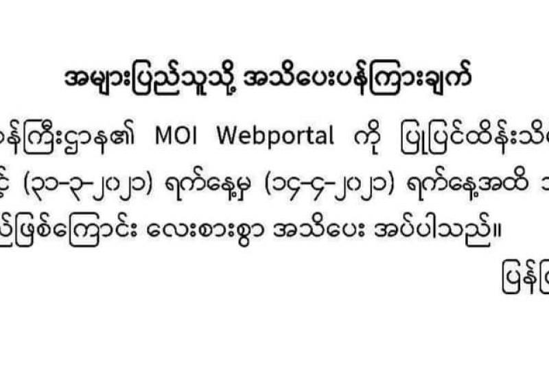 (၂၀၂၁ ခုနှစ်၊ မတ်လ (၂၈)ရက်နေ့ ညနေ(၄:၀၀)နာရီအချိန် ထုတ်ပြန်ချက်)
