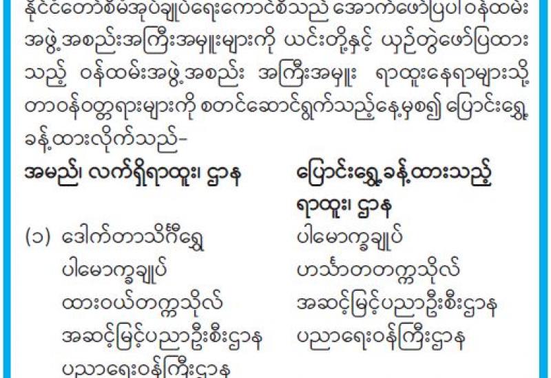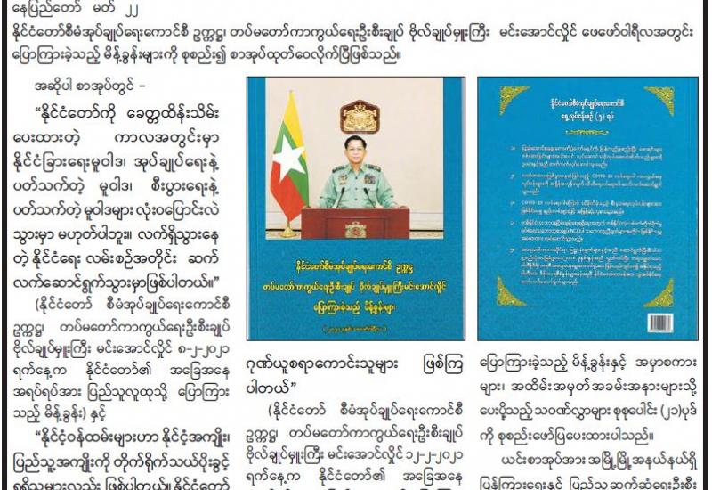 နိုင်ငံတော်နှင့် တပ်မတော်အတွက် အသက်ပေးလှူခဲ့ရသည့် အရာရှိ၊ စစ်သည်များ၏ မိသားစုဝင်များ၊ စစ်မှုထမ်းဟောင်းအဖွဲ့ဝင်များနှင့် မိသားစုဝင်များ၊ ရဲမှုထမ်းဟောင်းအဖွဲ့ဝင်များ၊ ပြည်သူ့စစ် (ဌာနေ) တပ်ဖွဲ့ဝင်များနှင့် မီးသတ်တပ်ဖွဲ့ဝင်များ စားရေး အခက်အခဲမရှိစေရန် ဆန်၊ ဆီ၊ ဆား၊ ပဲ အမယ်လေးမျိုးနှင့် COVID-19 ရောဂါကာကွယ်ရေး အထောက်အကူပြုပစ္စည်းများကို လည်းကောင်း၊ နိုင်ငံတော်ကာကွယ်ရေးနှင့် လုံခြုံရေးတာဝန် ထမ်းဆောင်လျက်ရှိသော တပ်မတော်သားများနှင့် မြန်မာနိုင်ငံရဲတပ်ဖွဲ့ဝင်များအတွက် ဆေးဝါးများ၊ စားသောက်ဖွယ်ရာများနှင့် ချီးမြှင့်ငွေများကိုလည်း ကောင်း သက်ဆိုင်ရာတိုင်းစစ်ဌာနချုပ်များ၊ စစ်မှုထမ်းဟောင်းရုံး၊ အိမ်ရာများ၊ တပ်နယ်ခန်းမများ၊ ရဲတပ်ဖွဲ့မှူးရုံးများနှင့် သက်ဆိုင်ရာရဲစခန်းများ၌ ပေးအပ်လျက်ရှိသည်။