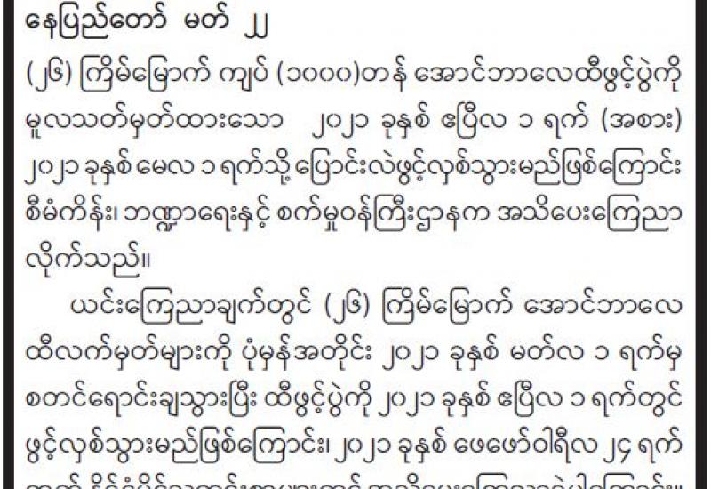 (၂၀၂၁ ခုနှစ်၊ မတ်လ (၂၃)ရက်နေ့ နံနက်(၇:၀၀)နာရီအချိန် ထုတ်ပြန်ချက်)