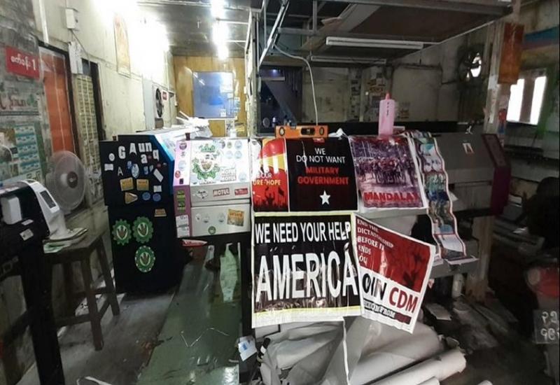 မန္တလေးတိုင်းဒေသကြီး၊ မဟာအောင်မြေမြို့နယ်၌ ဆူပူဆန္ဒပြရာတွင် ကိုင်ဆောင်အသုံးပြုရန် ဗီနိုင်းဆိုင်းဘုတ်ပြုလုပ်ပေးသည့် ကြော်ငြာလုပ်ငန်းဆိုင်အား ဖမ်းဆီးခဲ့ကြောင်း မြန်မာနိုင်ငံရဲတပ်ဖွဲ့၏ သတင်းထုတ်ပြန်ချက်အရ သိရသည်။