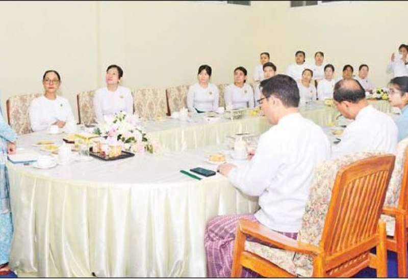 ပညာရေးဝန်ကြီးဌာန ပြည်ထောင်စုဝန်ကြီး ဒေါက်တာချောချောစိန်သည် တာဝန်ရှိသူများနှင့်အတူ ယနေ့နံနက်ပိုင်းတွင် မြန်မာနိုင်ငံတိုင်းရင်းသားဘာသာစကားဦးစီးဌာန မြန်မာစာအဖွဲ့ရုံး၌ မြန်မာစာအဖွဲ့ဝင် ဆရာကြီး ဆရာမကြီးများ၊ တာဝန်ရှိသူများနှင့်တွေ့ဆုံသည်။
