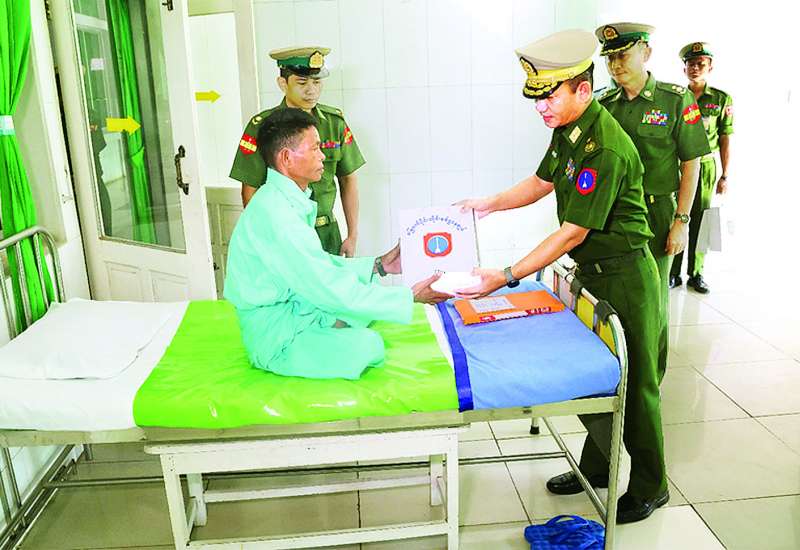 ကချင်ပြည်နယ် မြစ်ကြီးနားမြို့ရှိ တပ်မတော်ဆေးရုံ၊ ရှမ်းပြည်နယ် (မြောက်ပိုင်း) လားရှိုးမြို့ရှိ တပ်မတော်ဆေးရုံ၊ ရန်ကုန်တိုင်းဒေသကြီး မင်္ဂလာဒုံမြို့နယ်ရှိ တပ်မတော်အရိုးရောဂါအထူးကုဆေးရုံကြီး (ခုတင်-၅၀၀)နှင့် တပ်မတော်ဆေးရုံကြီး (ခုတင်-၁၀၀၀)၊ စစ်ကိုင်းတိုင်းဒေသကြီး မုံရွာမြို့ရှိ တပ်မတော်ဆေးရုံ၊ မန္တလေးတိုင်းဒေသကြီး မန္တလေးမြို့၊ နန်းမြို့တွင်းရှိ တပ်မတော်ဆေးရုံတို့၌ တက်ရောက်ဆေးကုသမှုခံယူလျက်ရှိသော အရာရှိ၊ စစ်သည်၊ မိသားစုဝင်၊ စစ်မှုထမ်းဟောင်းအဖွဲ့ဝင်များ၊ မြန်မာနိုင်ငံရဲတပ်ဖွဲ့ဝင်များ၊ ပြည်သူ့စစ် (ဌာနေ) တပ်ဖွဲ့ဝင်များနှင့် ဒေသခံပြည်သူများအား ယနေ့တွင် သက်ဆိုင်ရာတိုင်းစစ်ဌာနချုပ်များမှ တိုင်းမှူးများနှင့် တာဝန်ရှိသူများက သွားရောက်ကြည့်ရှု၍ တစ်ဦးချင်း၏ ရောဂါဖြစ်ပွားမှု၊ ဆေးဝါးကုသပေးထားမှုနှင့် ကျန်းမာရေးတိုးတက်ကောင်းမွန်မှု အခြေအနေများကို မေးမြန်းအားပေးစကားပြောကြားပြီး အာဟာရဖြည့်စားသောက်ဖွယ်ရာများနှင့် ချီးမြှင့်ငွေများ ပေးအပ်သည်။