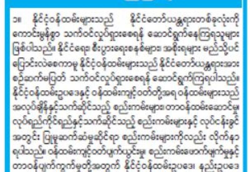 ၁။ မြန်မာနိုင်ငံသတင်းမီဒီယာကောင်စီဝင် ရွေးချယ်တင်မြှောက်ရေးအဖွဲ့သည် မြန်မာနိုင်ငံ သတင်း မီဒီယာကောင်စီဝင် လစ်လပ်နေရာများအတွက် ကိုယ်စားလှယ်လောင်း အဆိုပြုလွှာပုံစံများကို (၂၆-၂-၂၀၂၁)ရက် သောကြာနေ့မှ (၃-၃-၂၀၂၁)ရက်ဗုဒ္ဓဟူးနေ့အထိ နေ့စဉ်နံနက်(၉:၀၀)နာရီမှ မွန်းလွဲ (၁၆:၀၀)နာရီအတွင်း(ပိတ်ရက်မရှိ) ပြန်ကြားရေးနှင့်ပြည်သူ့ ဆက်ဆံရေးဦးစီးဌာန၊ မူပိုင်ခွင့်နှင့် မှတ်ပုံတင်ဌာနခွဲ၊ အမှတ်(၄)၊ ဝင်္ကပါလမ်း၊ ဗဟန်းမြို့နယ်၊ ရန်ကုန်တိုင်းဒေသကြီးတွင် အခမဲ့လာရောက်ထုတ်ယူနိုင်ပြီး (၃-၃-၂၀၂၁) ရက် ဗုဒ္ဓဟူးနေ့ မွန်းလွဲ(၁၆:၀၀)နာရီမတိုင်မီအချိန်အတွင်း အဆိုပြုလွှာပုံစံများကို နောက်ဆုံးထားပြန်လည်တင် သွင်း ရန် နေ့စဉ်ထုတ် သတင်းစာများတွင် ဖိတ်ခေါ်ထားပါသည်။ ။