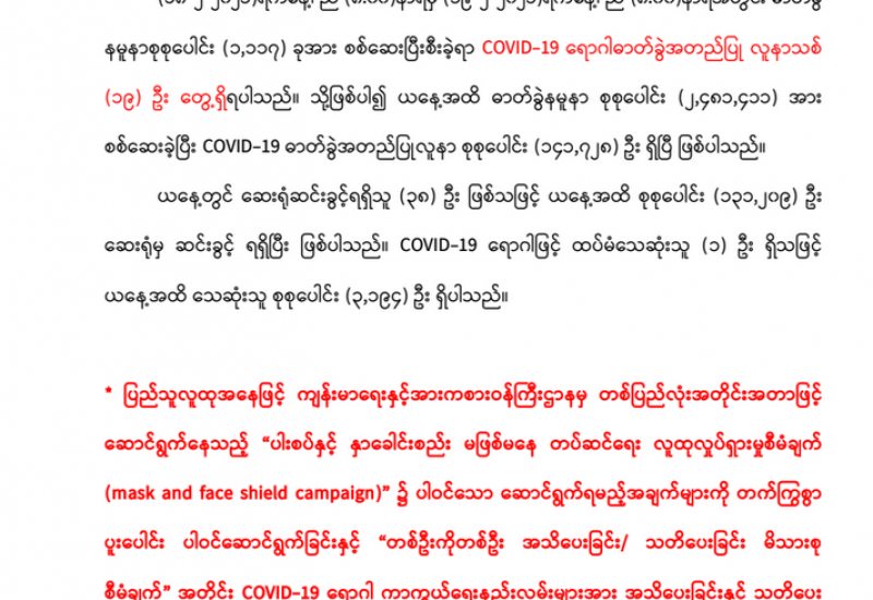 (၂၀၂၁ ခုနှစ်၊ ဖေဖော်ဝါရီလ (၁၉)ရက်နေ့ မွန်းလွဲ (၂:၀၀)နာရီအချိန် ထုတ်ပြန်ချက်)