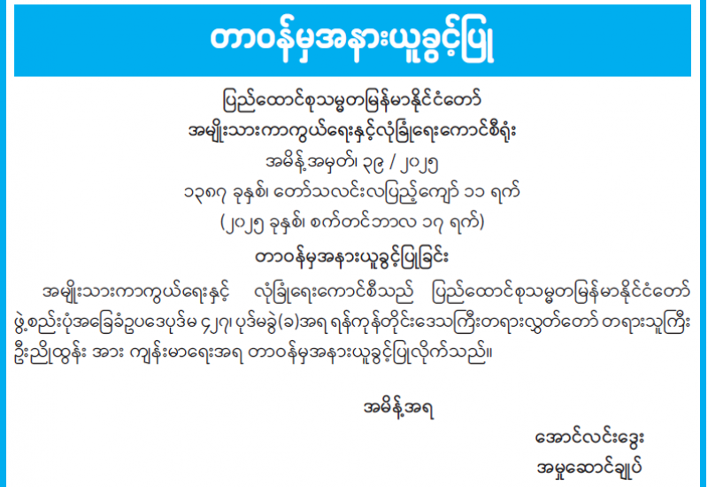 တာဝန်မှအနားယူခွင့်ပြုခြင်း