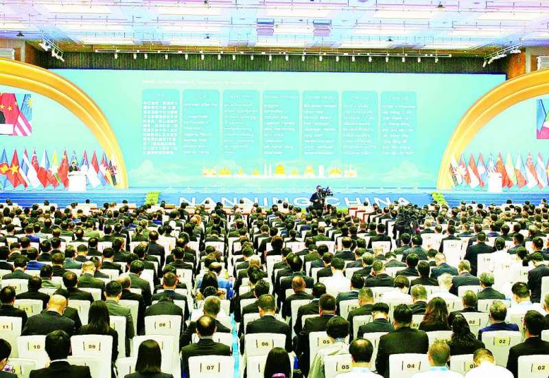 “အာဆီယံကို ဉာဏ်ရည်တုနည်းပညာဖြင့် ချိတ်ဆက်၍ ဒစ်ဂျစ်တယ်အသွင် ကူးပြောင်းခြင်းမှတစ်ဆင့် ဖွံ့ဖြိုးတိုးတက်မှုအနာဂတ်ကို မျှဝေခြင်း” ဆောင်ပုဒ်ဖြင့် တရုတ်-အာဆီယံစီးပွားရေးခေါင်းဆောင်များ ဖိုရမ်ဖွင့်ပွဲအခမ်းအနားကို ယနေ့မွန်းလွဲပိုင်းတွင် နန်နင်းမြို့ရှိ Grand Metropark Hotel ၌ ကျင်းပရာ နိုင်ငံတော်ဝန်ကြီးချုပ် ဦးညိုစော တက်ရောက်မိန့်ခွန်းပြောကြားသည်။