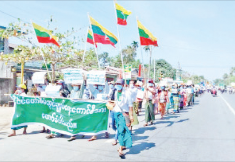 ၂၀၀၈ ခုနှစ် ဖွဲ့စည်းပုံအခြေခံဥပဒေနှင့်အညီ ဆောင်ရွက် လျက်ရှိသည့် မြန်မာ့တပ်မတော်အား ထောက်ခံ ပွဲကို ယနေ့တွင် တနင်္သာရီတိုင်းဒေသကြီး ကျွန်းစုမြို့၌ အင်အား ( ၈၀၀၊ မန္တလေး တိုင်းဒေသကြီး မိတ္ထီလာမြို့၌ အင်အား ( ၁၀၀၀၀ ခန့်ဖြင့်လည်းကောင်း၊ မလှိုင်မြို့၌ အင်အား ၃၀၀၀ဖြင့်လည်းကောင်း၊ ပျော်ဘွယ်မြို့၌ အင်အား ၂၀၀၀ ခန့်ဖြင့် လည်းကောင်း၊ ပဲခူး တိုင်းဒေသကြီး ထန်းတပင်မြို့၌ အင်အား ၃၀၀၀ ခန့်ဖြင့် လည်းကောင်း၊ ကျောက်ကြီးမြို့၌ အင်အား ၂၀၀ ခန့်ဖြင့် လည်းကောင်း၊ သာယာဝတီမြို့၌အင်အား ၃၀၀၀ ခန့်ဖြင့် လည်းကောင်း၊ မိုးညိုမြို့၌ အင်အား ၅၀၀ ခန့်ဖြင့် လည်းကောင်း၊ ဖြူးမြို့၌ အင်အား ၃၀၀၀ |ခန့်ဖြင့် လည်းကောင်း၊ မုန်းမြို့၌ အင်အား ၄၀၀ ခန့်ဖြင့်လည်းကောင်း အသီးသီး ဆန္ဒဖော်ထုတ်ခဲ့ ကြသည်။ ထိုသို့ ဆန္ဒဖော်ထုတ်ရာတွင် ဖွဲ့စည်းပုံအခြေခံဥပဒေ (၂၀၀၈)နှင့်အညီ ဆောင်ရွက် လျက်ရှိသည့် မြန်မာ့တပ်မတော်အား ထောက်ခံ ပါသည်၊ ဥပဒေနှင့်အညီ ဖွဲ့စည်းထားသည့် နိုင်ငံတော်စီမံအုပ်ချုပ်ရေးကောင်စီ အစိုးရသစ်အား ကြိုဆို ထောက်ခံပါသည်၊ ဥပဒေနှင့်အညီ ဖွဲ့စည်းထားသည့် UEC အသစ်အား ကြိုဆိုပါသည်။ ပြည်ပအားကိုး ပုဆိန်ရိုး အမျိုးသားရေး သစ္စာဖောက်များအား အလိုမရှိ၊ မြန်မာပြည်ကြီး ငြိမ်းချမ်းပါစေ၊ မြန်မာပြည်ကြီး အေးချမ်း ပါစေ၊ ဥပဒေနှင့်မညီသော ရွေးကောက်ပွဲရလဒ် အလိုမရှိ၊ အမျိုးဘာသာသာသနာကို စောင့်ရှောက်ပေးသော မြန်မာ့ တပ်မတော်အား ထောက်ခံပါသည်။ တပ်မတော်နှင့် ပြည်သူသွေးခွဲသူ ဒို့ရန်သူ၊ စစ်မှန်ပြီး စည်းကမ်းပြည့်ဝသော ဒီမိုကရေစီစနစ်ကို အကောင်အထည် ဖော်ဆောင် ပေးမည့် တပ်မတော်အား ထောက်ခံပါသည် စာသားပါ ဆိုင်းဘုတ် များကို ကိုင်ဆောင်ကြွေးကြော် ခဲ့ကြသည်။