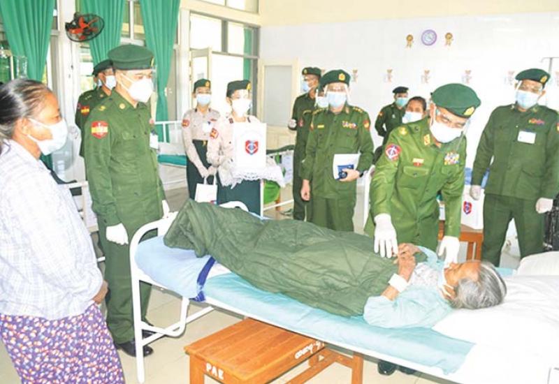 တိုင်းဒေသကြီးနှင့် ပြည်နယ်များရှိ တိုင်းရင်းသားပြည်သူများ၏ ကျန်းမာ ရေးဆိုင်ရာ ကုသပေးရန် အခက်အခဲ များ ဖြစ်ပေါ်မှုများကို တစ်ထောင့် တစ်နေရာမှ အထောက်အကူပြု စေရန်အတွက် မြို့နယ်အသီးသီးရှိ တပ်မတော်ဆေးရုံများ၌ ယာယီကုသ ရေး ဆေးရုံများဖွင့်လှစ်၍ တပ်မတော် မှ ပါရဂူများ၊ ဆေးမှူးများနှင့် သူနာပြု များဖြင့် စုဖွဲ့ ထားရှိကာ ကျန်းမာရေး စောင့်ရှောက်မှုများ ဆောင်ရွက်ပေး လျက်ရှိသည်။