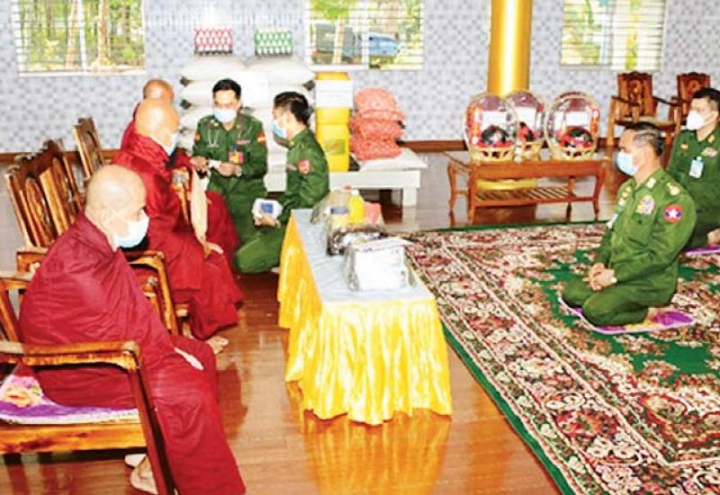 ကိုဗစ် - ၁၉ ကူးစက်ရောဂါ ကာကွယ်ထိန်းချုပ်ရေးကာလတွင် ဘုန်းတော်ကြီးကျောင်းများနှင့် သီလရှင်ကျောင်းများ၌ ဆွမ်းကိစ္စများ အဆင်ပြေစေရန်အတွက် တိုင်းစစ်ဌာနချုပ်များအလိုက် လှူဒါန်းလျက်ရှိရာ ယနေ့နံနက်ပိုင်းတွင် ကာကွယ်ရေးဦးစီးချုပ်ရုံး(ကြည်း)မှ ဒုတိယဗိုလ်ချုပ်ကြီး အောင်စိုး၊ ကမ်းရိုးတန်းဒေသ တိုင်းစစ်ဌာနချုပ် တိုင်းမှူး ဗိုလ်မှူးချုပ် စောသန်းလှိုင်နှင့် တာဝန်ရှိ သူများသည် တနင်္သာရီတိုင်းဒေသကြီး ထားဝယ်မြို့နယ် သပြေချောင်းကျေးရွာရှိ သပြေချောင်း ဘုန်းတော်ကြီးကျောင်းတိုက်သို့ သွားရောက်၍ ကျောင်းတိုက်ဆရာတော် ဘန္တနန္ဒဝံသ အမှူးပြု သောသံဃာတော်များအား ဖူးမြော်ကြည်ညို