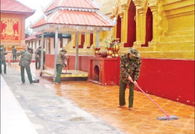 နိုင်ငံတစ်ဝန်းရှိ ဘုရား၊ စေတီပုထိုးများကို ဖေဖော်ဝါရီ ၈ ရက်မှစတင်၍ COVID-19 စည်းမျဉ်း၊ စည်းကမ်းများနှင့်အညီ ဖူးမြော်ခွင့်ပြု ပေးသွားမည်ဖြစ်ရာ ဘုရားဖူးပြည်သူများ စိတ်အေးချမ်း သာစွာ ဖူးမြော်ကြည်ညို တရားဘာဝနာ ပွားများနိုင်ရေးနှင့် ဘုရား၊ စေတီပုထိုးများ၏ ပတ်ဝန်းကျင် သန့်ရှင်းသာယာလှပရေးအတွက် တိုင်းစစ်ဌာနချုပ် အသီးသီးမှ တပ်မတော်သားများနှင့် မိသားစုဝင်များ၊ မြန်မာနိုင်ငံ ရဲတပ်ဖွဲ့ဝင်များနှင့် မီးသတ်တပ်ဖွဲ့ဝင်များက စုပေါင်း သန့်ရှင်းရေး ဆောင်ရွက်ပေးလျက်ရှိသည်။