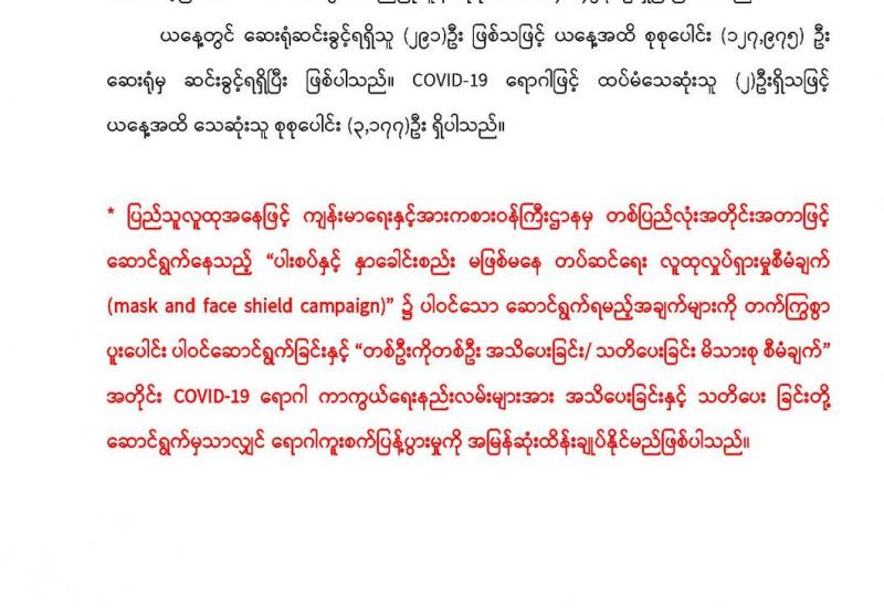 Covid-19 ရောဂါစောင့်ကြပ်ကြည့်ရှုမှုနှင့်ပတ်သက်၍ သတင်းထုတ်ပြန်ခြင်း (၈-၂-၂၀၂၁) ရက်နေ့၊ ည (၈:၀၀)နာရီ