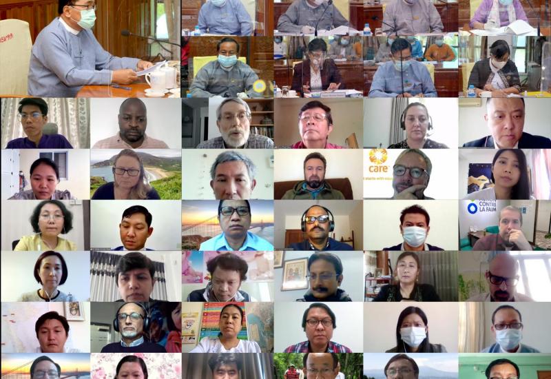 လူမှုဝန်ထမ်း၊ ကယ်ဆယ်ရေးနှင့် ပြန်လည်နေရာချထားရေးဝန်ကြီးဌာန၊ ဘေးအန္တရာယ်ဆိုင်ရာ စီမံခန့်ခွဲမှုဦးစီးဌာနနှင့် ပူးပေါင်းဆောင်ရွက်လျက်ရှိသည့် နိုင်ငံတကာ အစိုးရမဟုတ်သော အဖွဲ့အစည်း (INGOs) များနှင့် ထိရောက်သည့် ပူးပေါင်း ဆောင်ရွက်မှုများ ပြုလုပ်နိုင်ရေး အတွက် ညှိနှိုင်းအစည်းအဝေးကို ယနေ့မွန်းလွဲပိုင်းတွင် လူမှုဝန်ထမ်း၊ ကယ်ဆယ်ရေးနှင့် ပြန်လည်နေရာချထားရေးဝန်ကြီးဌာန၌ ဗီဒီယိုကွန်ဖရင့် စနစ်ဖြင့် ကျင်းပသည်။
