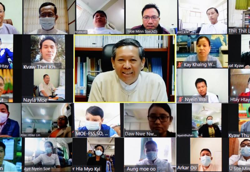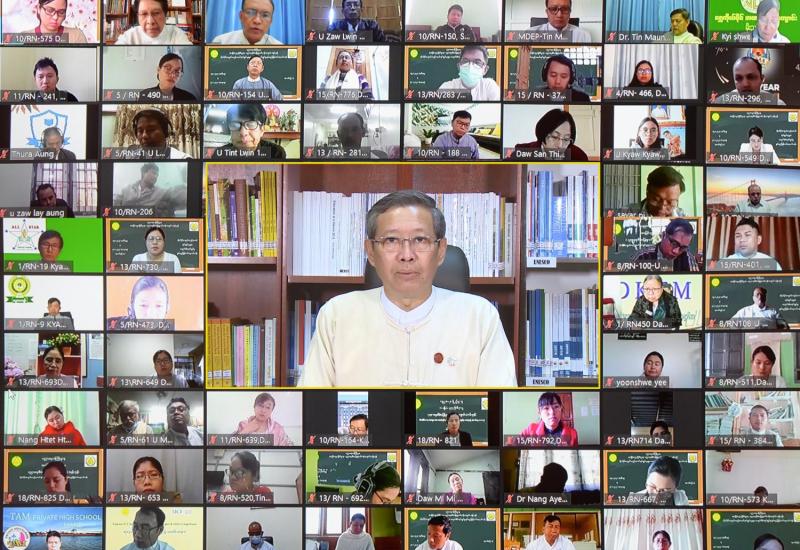 ပညာရေးဝန်ကြီးဌာန အခြေခံပညာဦးစီးဌာန ပညာရေးစီမံခန့်ခွဲမှုသင်တန်းကျောင်း(ရန်ကုန်)မှ ကိုယ်ပိုင်ကျောင်း တည်ထောင်အုပ်ချုပ်သူများအတွက် ကျောင်းစီမံအုပ်ချုပ်မှု စွမ်းရည်မြှင့်တင်ရေး သင်တန်း အမှတ်စဉ်(၁/၂၀၂၁) ဖွင့်ပွဲအခမ်းအနားကို ယနေ့ နံနက် ၉နာရီတွင် ဗီဒီယို ကွန်ဖရင့်စနစ်ဖြင့် ကျင်းပသည်။